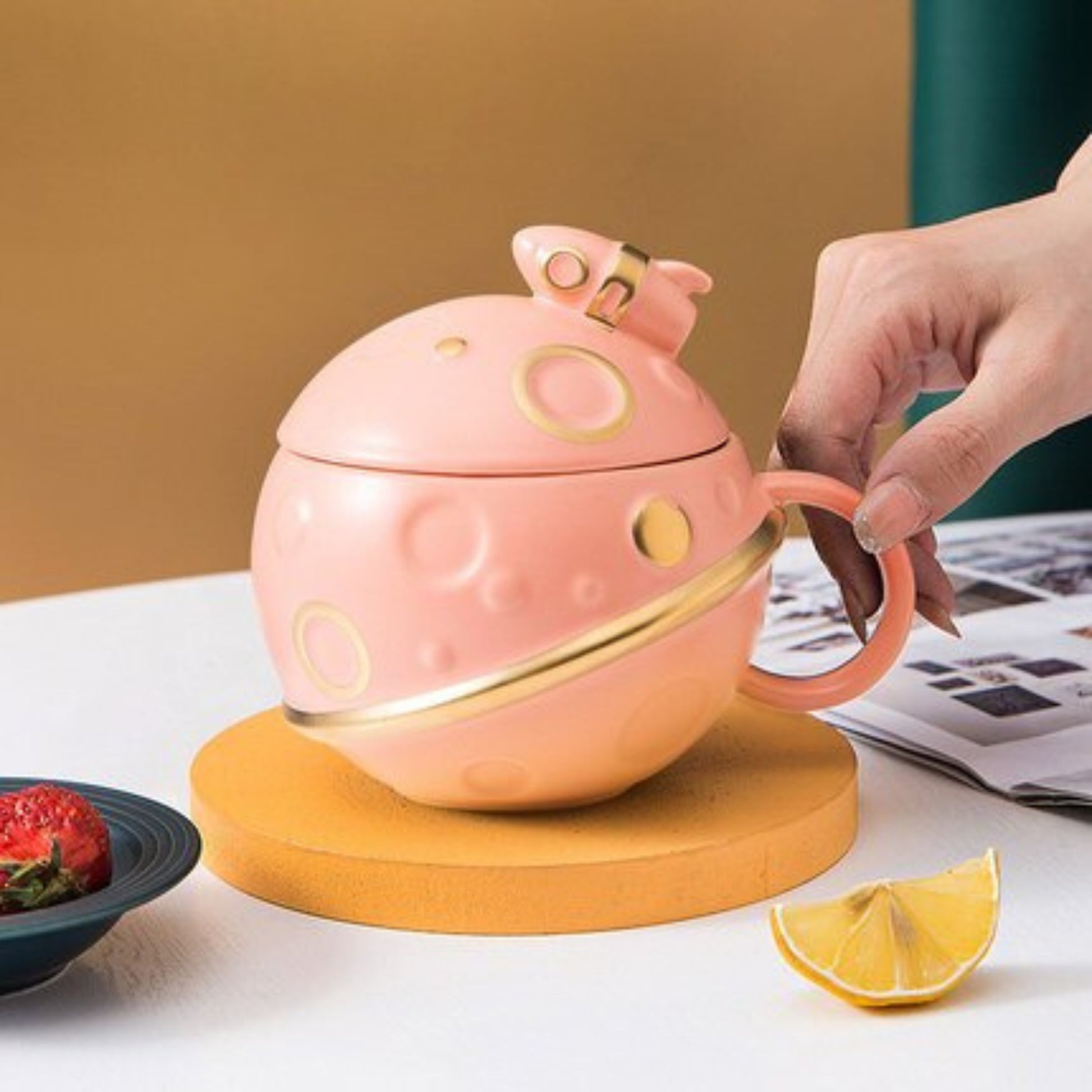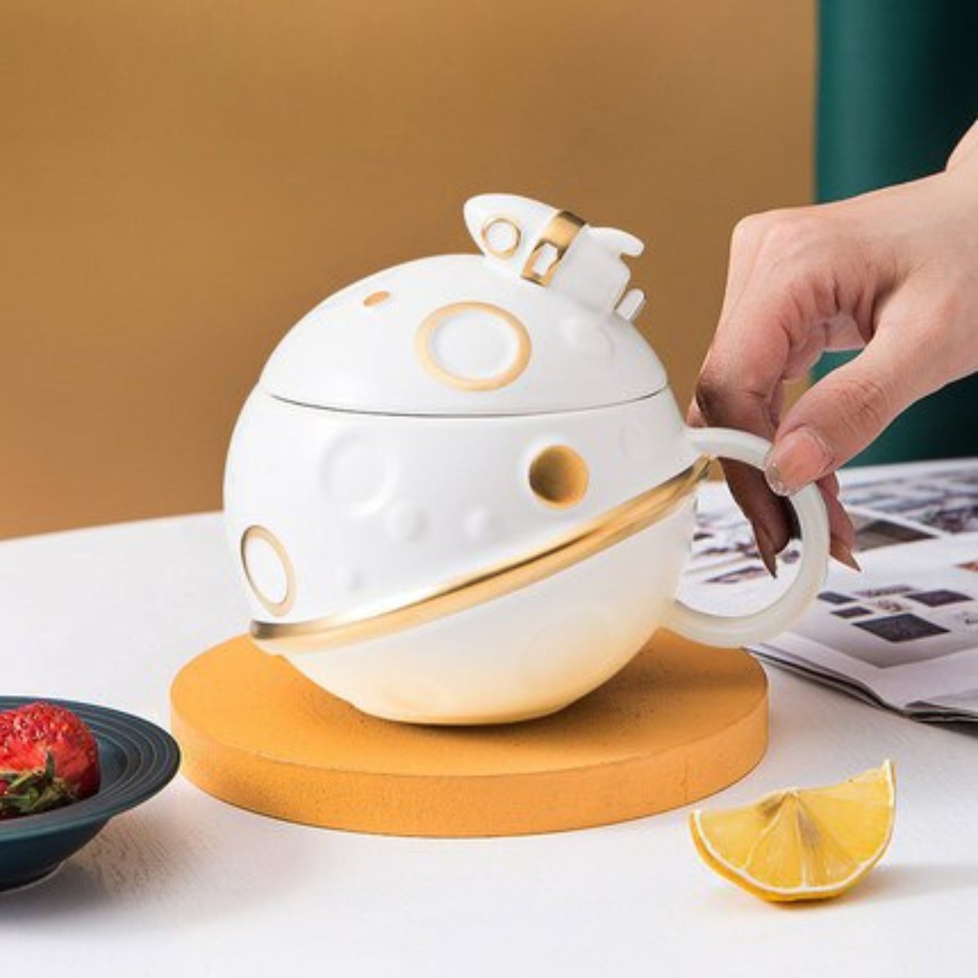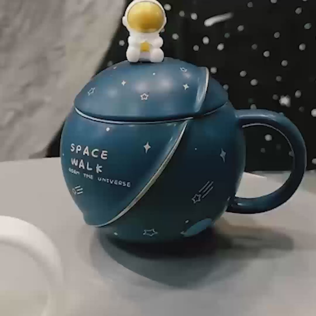 Crafted from high-quality ceramic, this mug is both durable and stylish. It comes with a handy spoon for stirring in sugar or cream, and it's available in two designs in various colors: one with a rocket lid and one with an astronaut lid.