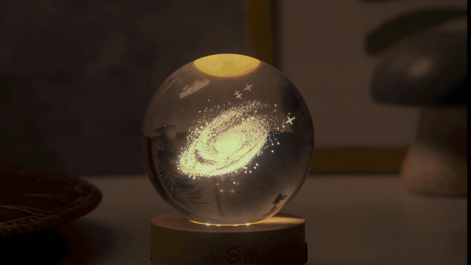Elevate the ambiance of any room with our rechargeable and wireless mesmerising crystal globe lamp.
